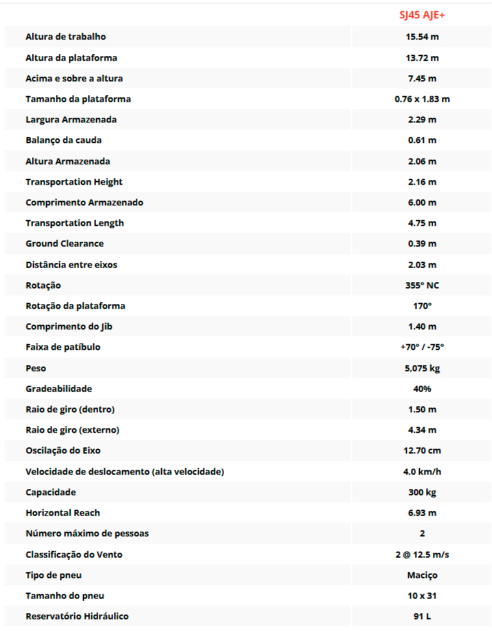 Altura de Trabalho: 15m