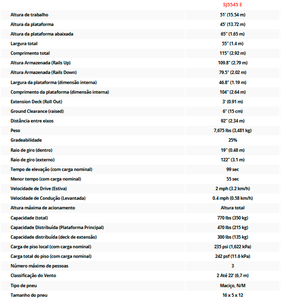 Aluguel de Plataforma Elevatória SJ5545 E